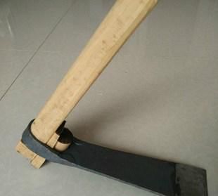 锄,就是锄头和锄把成“V”型连接,人拿着长长的锄把,拉送动锄头,在田间除草、松土。豫剧《朝阳沟》栓宝教银环锄地的一折戏,道具就是锄。